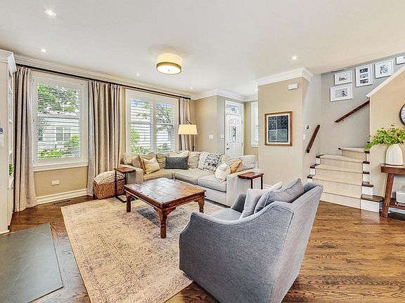 Welcome home to this 3-bed/3-bath single-family home with a basement, private backyard, and attached garage in the highly coveted gated community of Landmark Village! One-of-a-kind "suburb in the city" where kids play ball and ride bikes in the streets, block parties happen every summer, and weeknight food trucks are the norm. This 2 story home entertains a spacious foyer with a coat closet opening up to an inviting living room featuring, custom plantation shutters, exquisite millwork, and a gas starter fireplace with a beautiful tile feature wall flanked by custom built-ins. Well-appointed kitchen featuring quartz countertops, white shaker cabinets, stainless steel appliances, subway tile backsplash, and a large breakfast bar with tons of storage. Adjacent to the kitchen is a breakfast nook with a custom table and built-in banquet. This side of the kitchen also features a row of custom cabinets with a treated wood countertop providing extra storage and a beverage fridge. Additional dining area off of the living room and hardwood floors throughout the first floor. Ascend up to the second level which entertains 3 bedrooms. King-size primary suite with vaulted ceilings, custom drapery, and gut rehabbed primary bath with stunning stand-up shower, new double vanity, heated floors, and quartz countertop. 2 additional bedrooms perfect for a nursery, guest room, or home office. Newly renovated second bath with glass shower door, new vanity, and new tile throughout. Highly desired floor plan with a basement that features a one-of-a-kind movie theater space, newly renovated bath, rec room space, and laundry room with side-by-side washer and dryer, and tons of storage! 1 car attached garage and 1 exterior space in the driveway! The private rear yard is a small oasis featuring artificial turf, a built-in TV with mount, and a paver patio. New front porch with trex composite decking and newer front exterior landscaping. New roof in 2022! This single-family home is part of the homeowners association of Landmark Village and the monthly assessments take care of the water, garbage, landscaping, snow removal, and common maintenance of the gates, streets, and intercom system. A+ location for fun just steps from Hamlin Park, Che-Chi Wang Park, Weibolt Park, and Jahn playground. Walk to Whole Foods, Jewel, Menards, Cost-Co, the Brown line EL at Paulina or Diversey, Midtown Athletic Club, and the shops and restaurants of both Roscoe Village & Southport Corridor.