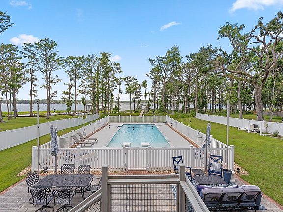 Welcome to your dream home nestled along the bank of Cherry Lake in North Florida, where southern charm meets modern elegance. This 3083 sq ft residence, has been meticulously designed with a modified Southern Living plan, that offers a perfect blend of comfort and sophistication. As you step through the entrance, you'll be captivated by the heart of the home with an expansive open-concept area featuring a kitchen, living room, dining room, and a bar area. Oversized windows frame picturesque lake views, creating a serene backdrop to your daily life. The shiplap ceiling and plantation shutters add a touch of timeless style. The kitchen is a true entertainer's delight, with matte-finished leathered marble countertops, stainless steel appliances, a full-sized side-by-side Frigidaire refrigerator/freezer, and a walk-in pantry. The adjacent bar area is equipped with an ice maker, beverage fridge, and a reverse osmosis water filtration faucet. Also on the first floor you have the spacious master bedroom with lake views, two walk-in closets featuring custom shelving, a marble walk-in shower, and a double vanity with a sitting area. There is another bedroom with an attached bathroom, a convenient powder room, and a well-appointed laundry room which complete the first floor living space. Upstairs, you have two guest bedrooms, a bathroom, and a cozy sitting area. No detail has been overlooked! The home features LVP waterproof flooring throughout, making maintenance a breeze. Enjoy the comfort of two AC units with an AprilAire HEPA filtration system, 3 whole-house dehumidifiers, a tankless water heater, and a Generac whole house generator. There is also heated and cooled attic space which adds to the efficiency and functionality of this home. Outside, relish in an acre of prime lakefront property with approximately 120 feet of lake frontage. When you are not out on the lake, indulge in ultimate relaxation while enjoying your saltwater swimming pool, with marble coping, a sun shelf, and an outdoor Sonos speaker system, this retreat invites you to relax in style. The cutting-edge heater/chiller and Pentair wireless controls ensure that every moment spent by the pool is a personalized experience tailored to your comfort. The property also includes an irrigation system, under-home pool storage, and additional under home walk-in storage which utilizes every useable space to the fullest. A brand-new boat dock completes the waterfront experience—featuring covered boat storage, a lift, and an enclosed storage room for all your lake essentials. Picture yourself entering a home where ownership is a breeze – a haven meticulously designed so that you can simply move in and enjoy. From the breathtaking lake views to the flawless interiors, this isn't just a residence; it's your worry-free sanctuary, where you can sit back and embrace the breathtaking sunsets from your screened-porch and enjoy life.