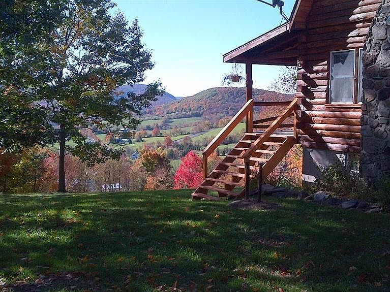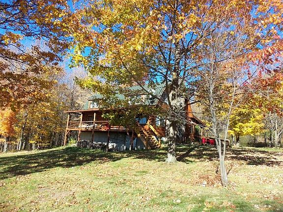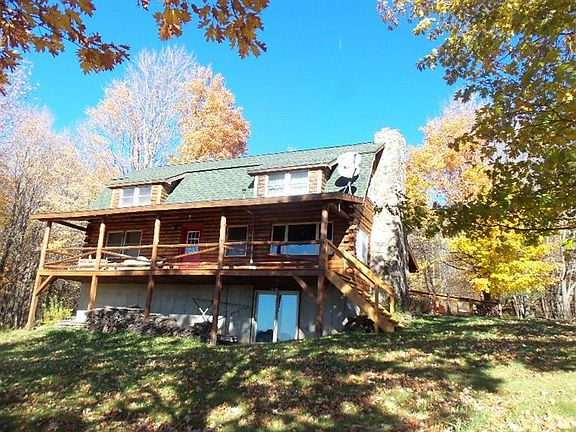 LOG HOME WITH ULTIMATE PRIVACY,KNOCKOUT VALLEY VIEWS,LARGE SWIMMING POND (with koi and sunnies)on nearly 20 acres!!!Adjacent to 147 acres of NYC land.Gorgeous stone fireplace!Four BR, 2 full baths with full basement. New pellet stove, front porch (to enjoy the views), back screen porch leading out to large deck with dock. Propane tank is used for stove,hot water heater and lights in the bathroom, LR and TV room (with mantles). Back gate accesses deeded right of way on Lyon Mt. Road for hiking, snowmobiling, ATV's. Great hunting for deer,small game; fishing.Not far from 4 ski areas.