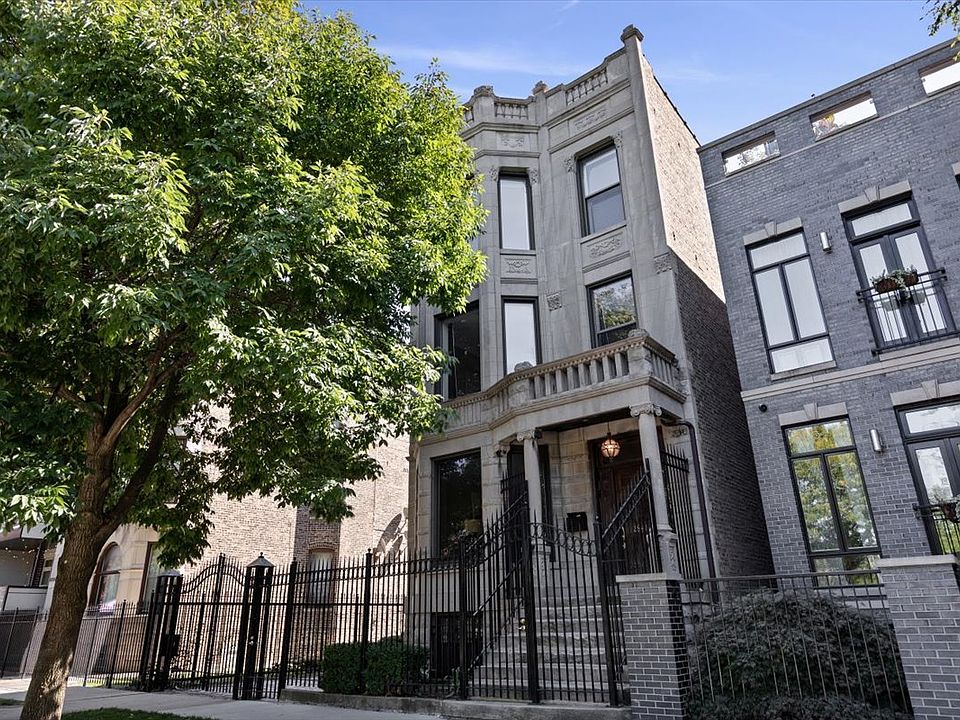 Fantastic opportunity to purchase a literal campus directly overlooking Humboldt Park. This graystone was converted into a stunning, and massive, single family home. The structure was meticulously rehabbed and features fantastic quality and custom vintage inspired details throughout. Huge rooms with large bay windows, 4 separate living spaces, 5 bedrooms and 4.1 bathrooms with abundant storage. The facade is stunning, with ornate limestone details and huge windows looking into 200 acre Humboldt park. Great finish details, like quarter sawn oak floors, hard wood window sills and casings, soaring ceiling heights, and solid core doors with custom hardware. 3 wood burning fireplaces, including one in the stunning primary suite. Next to the main residence is a wide side driveway. Reclaimed granite pavers from historic Maxwell Street create a stunning backdrop as you drive through the gated entry. There is comfortably room for 3+ cars, and one could build a carport or garage if they desired. At the back of the lot sits a 2 unit coach-house. This gorgeous red brick structure features 2 one-bedroom apartments and a full basement for storage. The apartments were recently rehabbed and have new kitchens and bathrooms, laundry and full HVAC. These provide great income. The Hi/Lo, Spinning J's, California Clipper, and lots of shopping is all right around the corner. Recently added bike lanes in front of the building reflect the city's ongoing commitment to creating a super pedestrian friendly park. Must see!