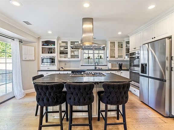 Step inside to discover rich French Oak hardwood floors, elegant crown molding, and built-in speakers throughout. The chef’s kitchen showcases soapstone countertops, Monogram appliances, and abundant custom cabinetry for storage. The seamless open layout flows into the inviting living areas, perfect for gatherings or quiet evenings by the fire.