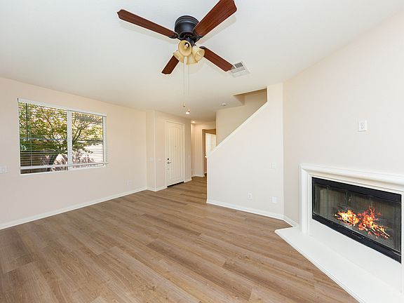 Welcome home to this move-in ready townhouse located in the highly desirable Mariposa community at Plum Canyon. As you enter, you'll be greeted by the warmth of the gleaming new flooring that flows seamlessly throughout the open concept living space. The family chef will love the gourmet kitchen with ample cabinets and counters, gas range and microwave above, dishwasher, large dual basin sink, tiled counters and backsplash and easy-care tile floors. Please be sure to bring your own refrigerator though! There are 2 bedrooms upstairs that both have their own bathroom, and a powder room downstairs. Some of the many amenities include large sunlit living room with direct access to the large patio, central A/C and heat for year-round comfort, recessed lighting, ceiling fans and conveniently located laundry room (will need to supply your own washer and dryer) with direct access to your one car garage. There is also a numbered carport for 1 car as well. The Mariposa Community offers a ton of amenities, including a sparkling pool, spa, shower area and large deck with loads of chairs, tables and loungers, a BBQ area with 3 BBQs and spacious prep area which is perfect for family entertaining and a playground for the kids. There are convenient restrooms and clubhouse with gorgeous beam ceilings, fireplace, TV and private kitchen which can be reserved for your private events. Located close to award-winning schools. The nearby Skyline Ranch Plaza is at walking distance, with its fine dining options, coffee shops, grocery stores, and more.