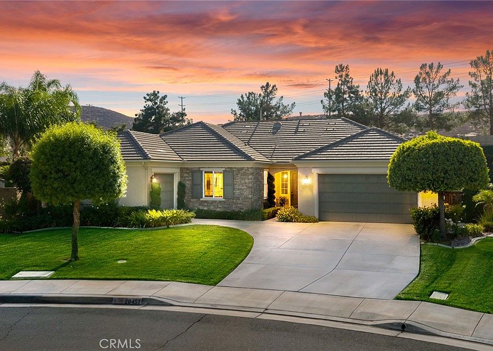 Welcome to a gorgeous, turn key single story home on an oversized lot in the desirable community of Heritage Lake. Step inside to discover the open concept living room and dining room offering an abundance of entertaining space. The gorgeous eat in kitchen aims to please with a large center island showcasing granite counter tops and plenty of cabinet space, which is adjacent to the family room featuring built in surround sound and a cozy gas fireplace. The four bedrooms are configured with ceiling fans, can lights and provide plenty of natural light, while the two full bathrooms include dual vanities, showers, and bath tubs. Additional features include a half bathroom and dedicated laundry room with separate two car and one car garages. Venture out back and explore a private, sprawling backyard consisting of a large covered patio with ceiling fans and can lights, a fire pit plumbed into the home's natural gas, a water fountain, a large lawn, and your own producing vineyard and fruit trees. Conveniently located minutes from the I-215 freeway as well as an abundance of shopping and dining with schools in the neighborhood, just about everything you need is a short distance away. Residents of this beautiful neighborhood can take advantage of the numerous walking paths and sports facilities, as well as the community pool, splash pad and club house. Seize the opportunity to make this beautifully maintained home your own and schedule your private showing today!