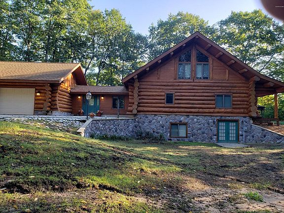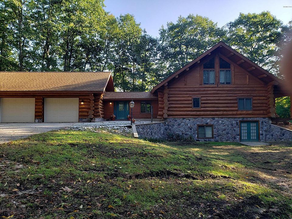 Incredible custom crafted log home, logs were custom crafted to fit together. Over 3700 Sq. Ft of finished living space. 4 Bedrooms, 3 1/2 bathrooms. Large 2 stall attached garage and 23 acres to play in. The East boundary of the property is the north branch of the White River. Beautiful open floor plan with decks on two sides of the home in addition to a screened gazebo to relax in and enjoy the solitude. This is a beautiful one of a kind home.