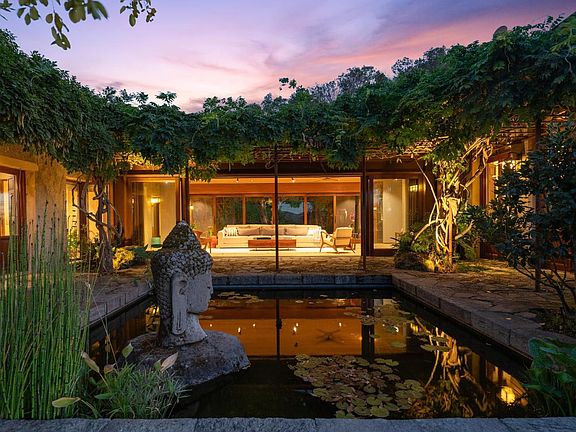 Wall Street Journal Winner: House of the Week. House of the Month and Nominee for 2025 House of the Year. (House of the year voting begins December 2025) Designed to blend in with the landscape, not dominate. This tranquil Zen influenced home, embodies peace and tranquility yet is only 7 minutes from Silverado Country Club . All homes have kitchens, bedrooms & baths, but few have rammed earth construction (designed by Michael Baushke & built by David Easton) which fold seamlessly into the rocky contours of the Palisades high above the Valley in eastern Napa. Adjacent to iconic wineries Kenzo and Jarvis. It has over 4,000 sqft, 3 ensuites artfully designed and a great room with custom floor to ceiling windows & doors that open to outdoor seating & entertaining areas capitalizing on Napa's famed indoor/outdoor living. This Zen masterpiece comes with 8-24 steel-reinforced earth walls and custom floor to ceiling windows & doors. The primary bedroom features a built-in media center with wet bar, fireplace, spacious walk-in closet, spa-like bath and access to outdoor shower & private courtyard with views. To add to the Napa Valley feel, there are expansive wine caves, 70 acres of land, a 2-acre cabernet vineyard, an olive grove and a horse barn.