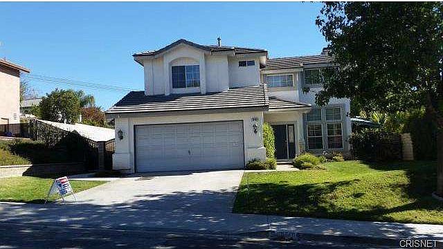 Spacious and open floor plan offers high volume ceilings, separate living room and family room, eat in kitchen, down stairs bedroom and full bath! Upgrades abound including custom teak laminate flooring in living room and family room, added custom entertainment center, tiled entry, downstairs hallway and bath and tiled dining area and kitchen. Custom solid Oak stairs leading up to upstairs master and hallway all custom Oak. Upstairs offers three bedrooms and secondary bath. Spacious master suite has large walk in closet and combo master bath shower/tub enclosures and dual sinks. All bedrooms have ceiling fans and mirrored closet doors. Residence comes with whole house fan to save on those warm summer monthsPool size back yard with lush landscape, possible RV access and huge custom patio cover and patio area. Dog run on one side all on large private yard. Two car attached garage with direct access includes some storage cabinets, laundry area and newer water heater. A exceptional opportunity for wonderful residence located in Saugus - Santa Clarita just steps from park, all with no HOA or Mello Roos.
