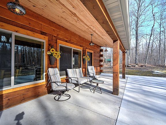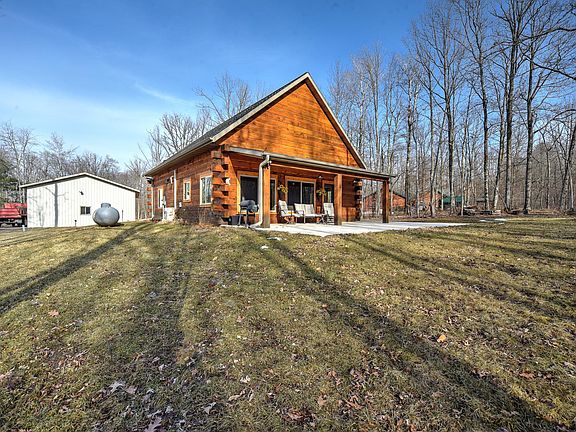 Discover timeless charm and modern convenience in this immaculate log home. All living necessities reside on the main level. Nestled on a half-acre lot with shade trees, this home features beautiful pine cabinetry, loft-style upper level, and a covered patio for outdoor living. In-floor heat. As part of the Loch Lomond Beach Club association, residents enjoy access to a swimming pool, splash pad, boat launch, parks, and more. Spacious 38x28 insulated and heated detached garage/shop. Home comes fully furnished. Schedule your showing today!
