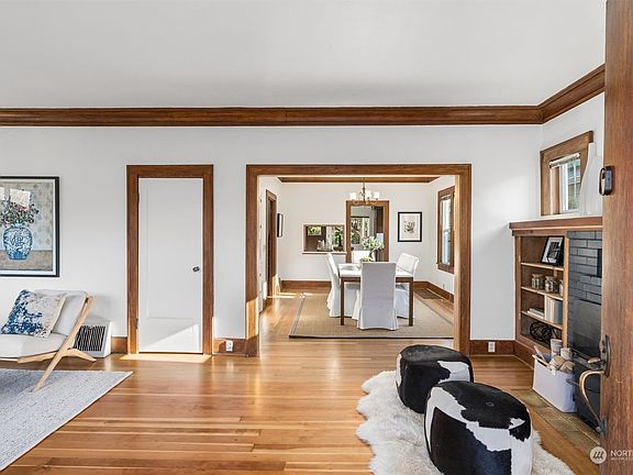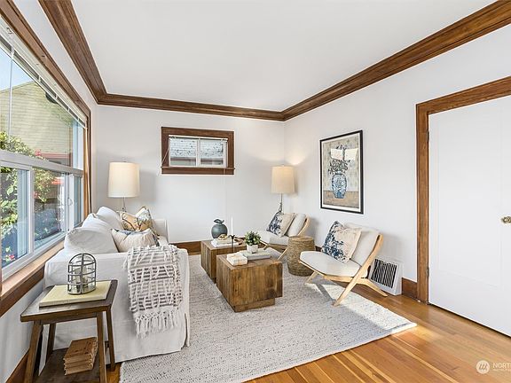 This beautiful Ballard Craftsman is full of charm and period character. Classic woodwork and high ceilings match the era and are highlighted by abundant natural light. The oversized kitchen has new quartz countertops, newer appliances, and a wealth of potential. Three bedrooms above grade with a possible 4th upstairs. The private top-floor deck features views of Mt. Rainier and the Space Needle. The lower level, with a separate entrance, has a living space, kitchen, & bath. It would make for a future Airbnb, studio, storage, or WFH office. Walk to Downtown Ballard, schools, and parks just one block from Picolino's, restaurants, and cafes. Newer roof, windows, fresh interior paint, new carpet, and RainWise gardens. Bus/bike to Downtown/SLU.