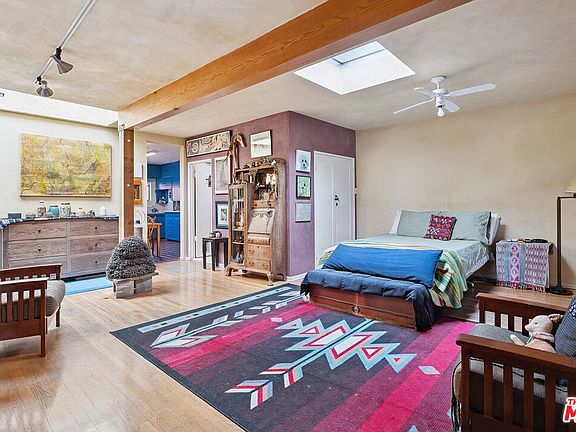 Welcome to 2847 Robertson, a truly unique opportunity to own a piece of Los Angeles history. This storied address was once the working studio and home of the legendary Rachel Rosenthal, one of the most influential interdisciplinary artists, performers, and teachers of the 20th century. The front half of the property is smartly partitioned into two distinct rooms, making it well-suited for two separate businesses or creative ventures. Behind this, there is a performance studio with 220-amp power and dramatic double-height ceilings. This studio space can easily function as a garage, accommodating up to four vehicles. Upstairs, there is a spacious studio apartment, a large patio, and an additional studio space. The studio apartment upstairs features a full kitchen, living room, and bathroom with incredible tree-top views. The additional studio offers exceptional natural light and could potentially be transformed into an additional residential unit. Recent improvements include brand new lighting and windows throughout, new roofs and a deck (2025), and major system updates: upgraded electrical panels (2023 & 2024), and new HVAC. Rarely does a live-work residence combine such versatility and historic provenance.