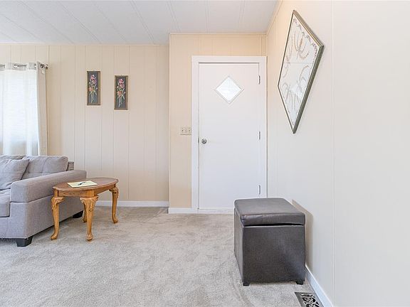 This lovely floor plan boasts 2 bedrooms and 2 bathrooms and a good size kitchen with new countertops. Additional updates include some fresh paint, newer carpet in the bedrooms & living room and new flooring in the laundry room - this home is in move in condition. Sunny, south facing and situated in popular Goldstream Mobile Home Park. Large, open living area attaches to the dining room with built in hutch. There is a large ensuite off the master bedroom which offers a double vanity, soaker tub and separate shower. Fenced yard with 8x11 wired workshop, and small garden area. Newer electric heat pump and furnace, newer hot water tank, sun guard window film on the front south facing windows. Both porches are enclosed for added storage. Some pets allowed. Monthly pad rent includes sewer, water, & garbage. The perfect setup to move in & enjoy - quick possession is available.