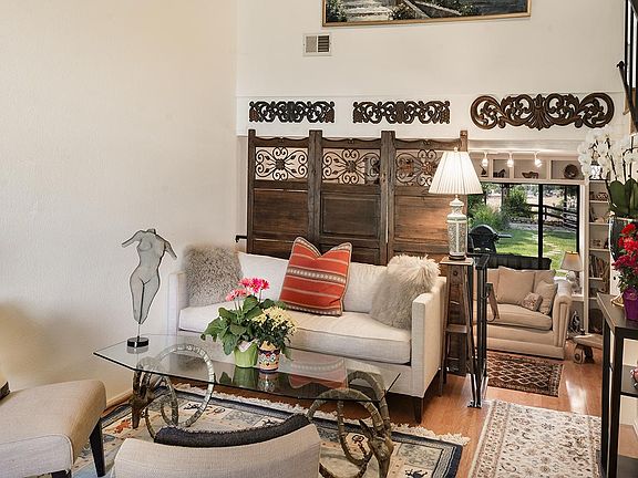 Under old sycamore trees gracing well-maintained lawns, the home opens with sliders above and below to a view of Solvang looking like Switzerland. The 14 acre open space for two horses, fenced backyard for dogs, the spa is heated to 104 every night, the pool is heated in the summer, and the tennis courts are never used. There are only 12 townhomes behind the High School by El Rancho and the YMCA. It is like living in your own country club in an elegant home with three separate living spaces, covered back porch, balconies off of every bedroom, a club house and a pool at your private disposal and a huge health club with an olympic size pool, down the drive. Owner pays utilities, rented furnished.