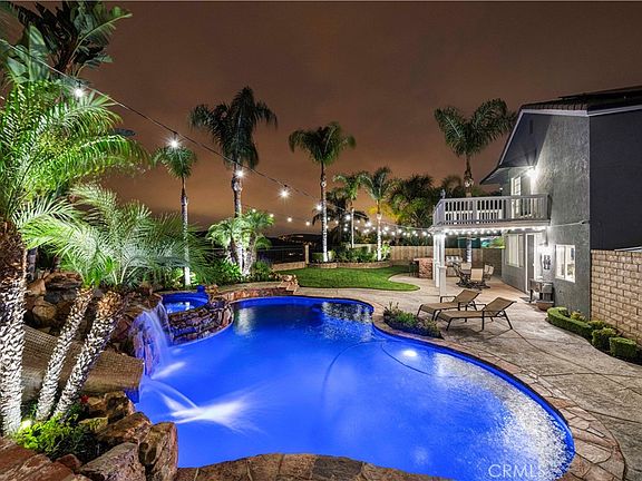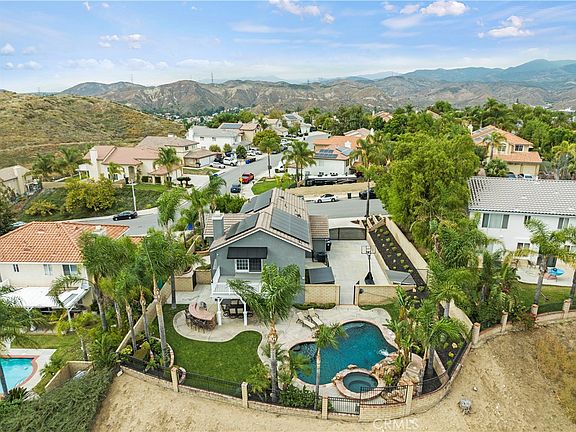 Insanely Stunning and Immaculate 4+3+Loft Pool Home with Views for Days, Huge Gated Dual Side by Side RV Parking, EV Charging Station, Paid Solar and NO HOA or Mello-Roos! If this wasn't enough the interior highlights also include, new shutters, freshly painted throughout, recessed lighting, new flooring, and upgraded hvac and furnace. Step in to find a formal dining that opens to the welcoming living room. Cozy family room with a custom stone fireplace & mantel and gorgeous mountainous views. Beautiful and open kitchen with stainless steel appliances, custom backsplash, stunning granite counters, upgraded cabinetry, and breathtaking views of the yard. Downstairs you will also find a remodeled powder room for guests. Head up to the second level to find a loft with storage. Huge primary suite with stunning views, and a slider leading to the big balcony, with a massive remodeled resort style bathroom with dual sinks, stunning walk-in shower with dual rainfall shower heads, and a spacious walk-in closet. Three additional bedrooms with mirrored wardrobe doors, and a remodeled bathroom to share. Head outside to find a tropical oasis, and entertainer's dream