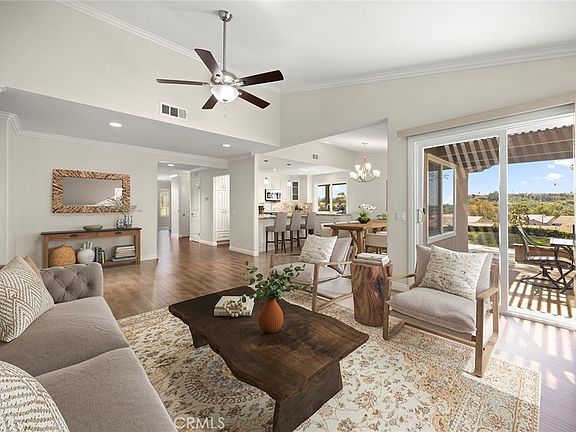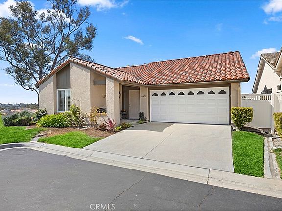 Views. Views. And more views. If you're searching for that wow factor, look no further than this northeast-facing, single-story home—perfectly situated on a corner lot at the end of a cul-de-sac. This upgraded and well-loved home has been recently RE-PIPED, freshly painted inside, and features a brand-new outdoor deck. And did I mention it has VIEWS? Let’s go! This is one of the most sought-after floor-plans in 55+ community of Casta del Sol. With its open concept and ideal flow, you’ll love calling this home your own. The three-bedroom layout includes one room that has been used as an office or den, making the space as versatile as it is functional. Double-pane windows, shutters, easy-to-maintain flooring, and a seamless flow throughout create a warm and welcoming feel. The kitchen checks all the boxes—granite countertops, recessed and pendant lighting, soft-close drawers, pull-out trash and recycle bins, a lazy Susan, and more. Prefer casual meals? Pull up a stool and dine at the convenient counter bar. The living room offers privacy, a cozy gas fireplace, ceiling fan, and in-wall power access for a clean TV mount setup. It flows effortlessly into the dining room, which is bright, spacious, and perfect for hosting or everyday dining. The primary bedroom is generously sized and features an updated en-suite bath with dual vanities, granite countertops, a walk-in shower with built-in bench, and two mirrored closets. Bedroom 2 is located near the front of the home and enjoys views of the front yard, while Bedroom 3 (used as an office/den) also sits near the front, offering a sliding glass door that provides easy access to the extra-large patio deck—perfect for stepping out to enjoy the fresh air and scenic views. An additional full bathroom with a shower/tub combo is ideal for guests. The home also boasts multiple access points to the backyard, where you can enjoy your morning coffee or devotional in peace. The brand-new deck is the perfect place to sit, exhale, and take in the incredible views. The two-car garage includes direct access into the home. The HOA dues cover landscaping, trash pickup, front yard maintenance, and exterior painting of the homes—making for easy, worry-free living. Adjacent to the Oso Creek Golf Course, featuring a beautiful patio, restaurant, and fun lounge. Residents also enjoy membership to Lake Mission Viejo, where you can enjoy two private beaches, picnic, sail, fish & more. This home and community truly have so much to offer!
