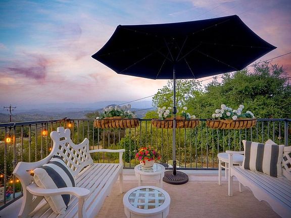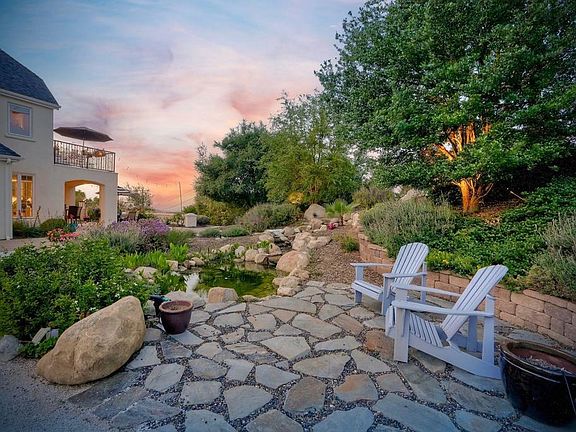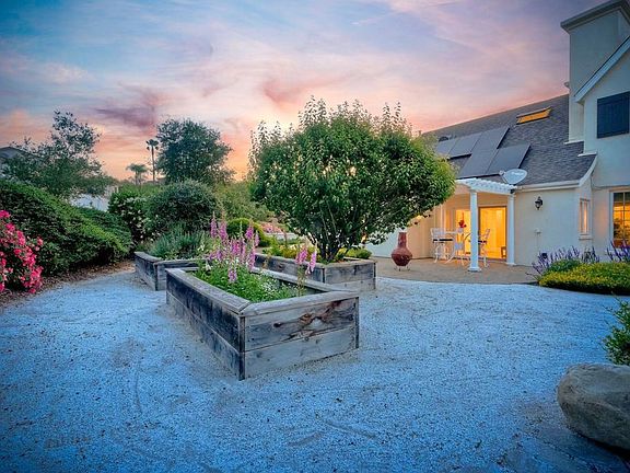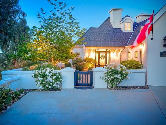 Meet "Petit Maison De Joie", a gorgeous estate where storybook charm meets serene luxury in this 3-bedroom, 2.5 bath French chateau-style home. Tucked away at the end of a quiet cul-de-sac on over an acre of land, this home has NO HOA! Plenty of space to store your Boat or RV! From the long, private driveway to the fairy tale exterior, this home offers beauty, privacy, and everyday comfort in equal measure. The spacious primary MASTER SUITE is located on the FIRST FLOOR and features a clawfoot tub, a large MARBLE walk-in shower, and even remote-controlled toilets with auto-lift lids, a thoughtful touch of modern convenience. There are gorgeous wood floors throughout. Two additional bedrooms and a full bath are upstairs, with access to a private balcony overlooking the backyard. Home has transferable SOLAR, Built-in stainless steel newer appliances in kitchen with lovely crystal chandelier and many other RECENT UPGRADES! Outdoors, unwind in a tranquil setting complete with a waterfall, ROSE GARDENS, a gentle stream, and a charming chicken coop on this gorgeous 1.06 ACRE LOT! Whether you're sipping your morning coffee or enjoying a glass of wine at sunset, this peaceful setting makes it hard to believe you're only 35 minutes from the Beach! This is more than a home—it's a retreat you’ll never want to leave.