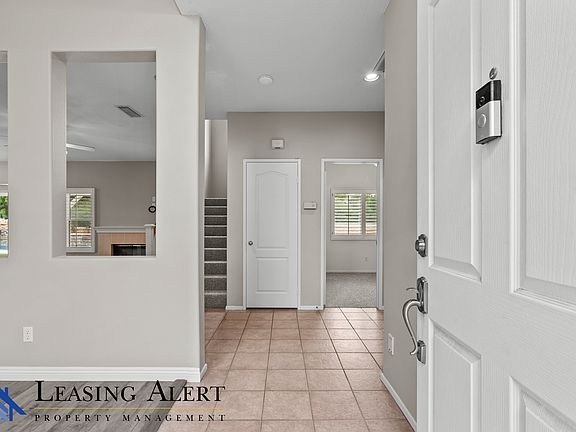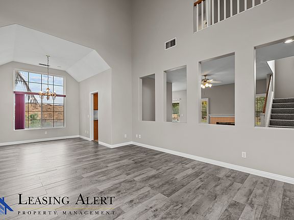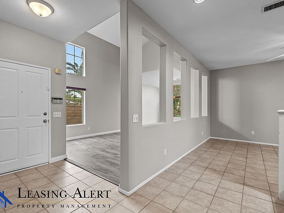 Welcome to this inviting two-story, 4-bedroom, 3-bathroom home in the highly desirable Plum Canyon neighborhood, offering the perfect balance of comfort and convenience. Spanning 2,040 square feet, the residence features tile, carpet, and vinyl flooring, fresh paint, new carpet, and solar panels for added savings. The first floor impresses with high ceilings in the living room, recessed lighting, and a convenient downstairs bedroom and bathroom with a shower, while the kitchen provides granite countertops, a stove, oven, dishwasher, microwave, and ample workspace for easy meal preparation. A cozy fireplace warms the family room, and there's also a formal dining area for larger gatherings. Upstairs, discover three spacious bedrooms, including a luxurious master suite with two closets, dual vanity sinks, a separate tub, and a stand-up shower plus each bedroom has a ceiling fan for year-round comfort. Enjoy the privacy of a large backyard with a sleek black vertical fence, a sparkling pool, and only one neighbor directly beside you. Palm trees and expansive views enhance the tranquil outdoor setting. Complete with an oversized three-car garage featuring built-in storage cabinets and a dedicated laundry area (with washer and dryer included), this home offers everything you need to truly embrace the sought-after Plum Canyon lifestyle. Tenant Is responsible for all utilities. Up to 2 small pets allowed with one-time $500 dollar deposit and $50 dollar pet rent per month.
