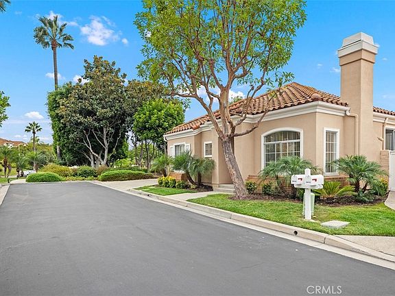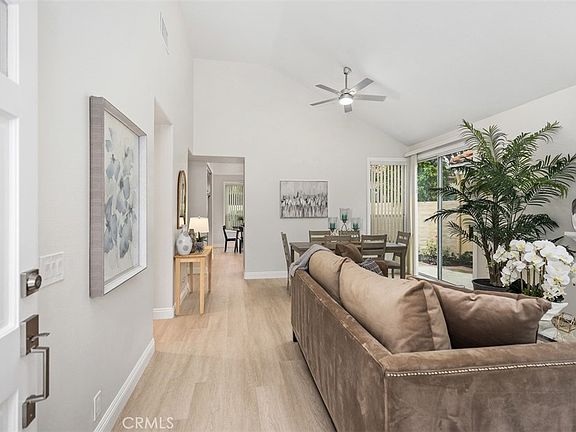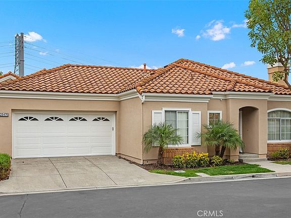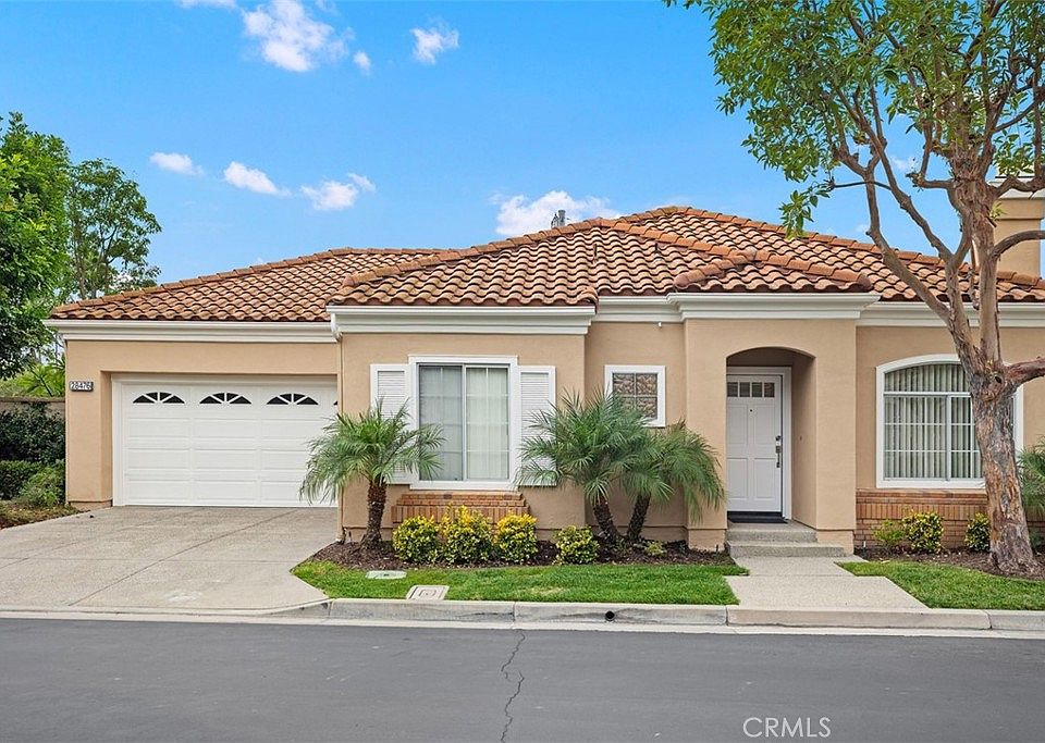 IMPECCABLY APPOINTED... WHAT A GEM... Located in one of South Orange County's Most Highly Sought, Active Lifestyle Communities... Gorgeous PALMIA, a 55+ retirement community like no other. This SUPREME Location - just steps to the clubhouse, pool and sports courts in incredible Villas 1 is a beauty with two bedrooms and two bathrooms and newly renovated. Enjoy brand new: luxury vinyl plank flooring, fresh custom paint, wide baseboards, new blinds, counter tops, fixtures and lighted ceiling fans that all compliment the high ceilings and gorgeous open space, bringing in plenty of natural light through the luxurious sliding doors and windows. This home is truly a design delight... So elegant, yet warm and comforting. A lovely and spacious wrap around patio yard with brand new landscape to enjoy is perfect for backyard entertaining or dining al fresco. Attached 2 car garage with new opener and plenty of storage space. This 24 hour guard gated community offers many amenities to its residents including: an 18 hole putting green, state of the art workout facility, gorgeous clubhouse, pool, spa, tennis, shuffleboard, pickleball, bocce, billiards & so much more. An abundance of planned social activities, classes & outings await you. Also includes cable TV and WiFi. This Property is Truly a Delight.