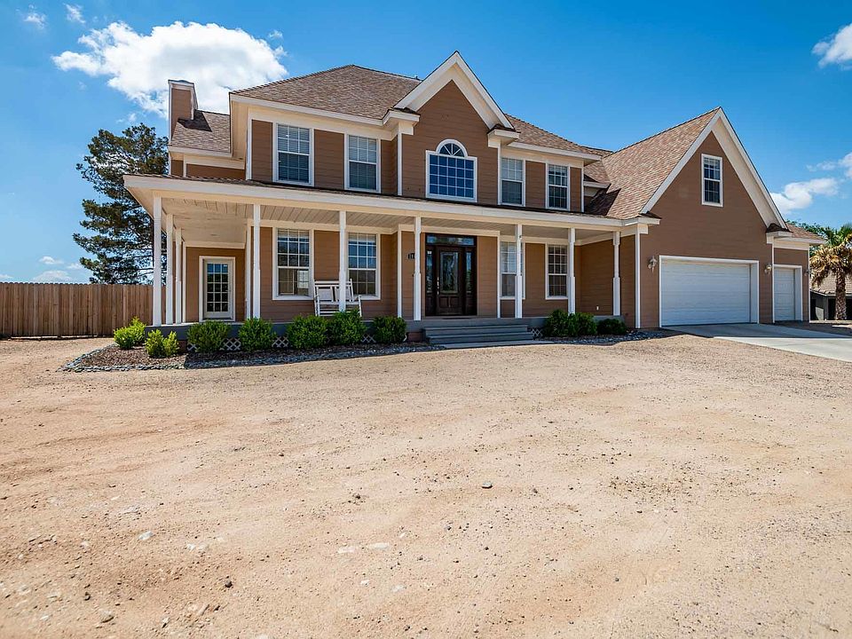This country style home is straight out of a magazine! This unique home is on a corner lot in a great neighborhood w/ mountain views, amazing front porch, & a three-car garage that has a large bay that pulls straight through to the backyard. Upon entering the home you are greeted w/ a formal living area followed by a cozy living space w/ a fireplace for those cool evenings, casual dining area, white & bright kitchen, & a formal dining area that can also be used as an office. The kitchen offers a ton of cabinets & storage, island w/ a cook-top, double ovens, & stainless steel appliances. You can then head upstairs to a large room that would make a great play room or guest space w/ its own sitting area, French doors to bring in the fresh air, & in-door laundry upstairs. The master bedroom is great w/ double doors, & en-suite bathroom w/ a garden tub, separate walk-in shower & large walk-in closet. The third & fourth bedrooms are a great size along w/ the hall bathroom. The basement, that's right a basement, has a great private office space. The backyard is fully fenced & ready to become your dream backyard to go w/ this charming place for you to call home.