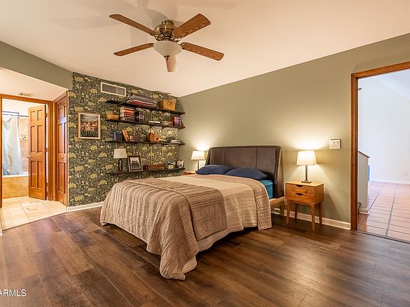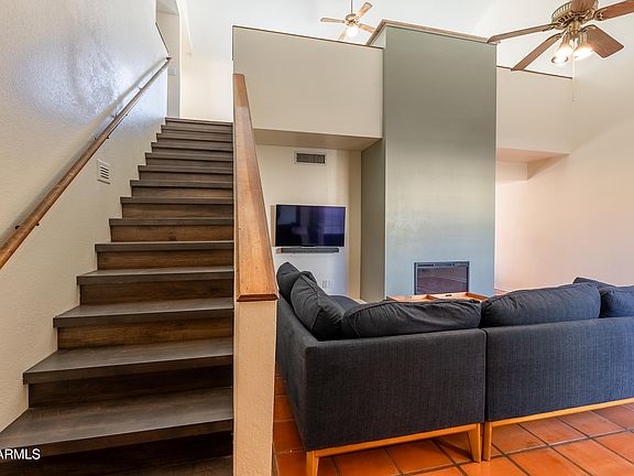 Discover the charm of Mesa's Northgrove with this modern Southwestern gem! Featuring 3 bedrooms, 2 baths, and a main-floor primary suite, this home welcomes you with a gated courtyard. Step inside to find vaulted ceilings and beautiful Spanish Saltillo tile. The updated kitchen boasts stainless steel appliances, new countertops, and a spacious undermount sink. Upstairs, enjoy a versatile loft perfect for an office, gym, or play area, plus a massive guest room with a private patio. The low-maintenance backyard includes mature landscaping. Benefit from newer roof, windows, and AC. Your Mesa dream home awaits!