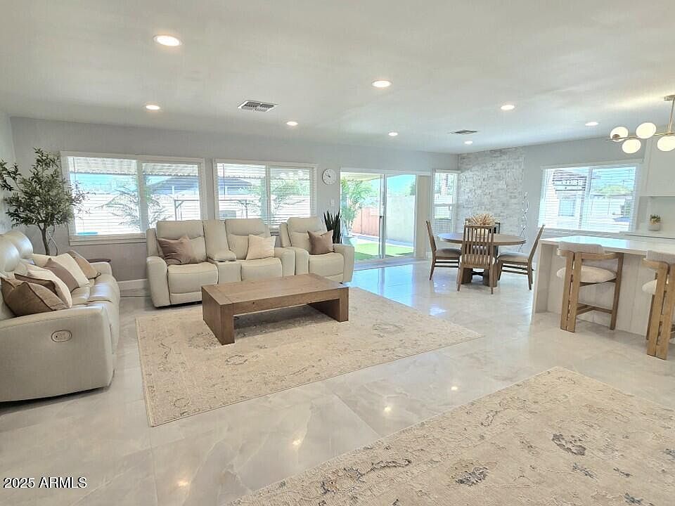Located in the convenient Shea/Tatum Corridor, surrounded by mountain views, this beautiful 4 Bed/3 Bath fully renovated (2025) single level family home is unfurnished and move-in ready for you to make it your own! Light and bright this open concept kitchen/dining/family living design features wood burning fireplace, fully tiled flooring throughout, crisp white kitchen with quartz countertops and island, split master, secondary bedroom with ensuite bath, recessed lighting throughout. Large backyard has turfed patio and plenty of room for fun and storing motorized toys with access to RV gate and parking. No Pets. No HOA. Come see what makes this such a special home!