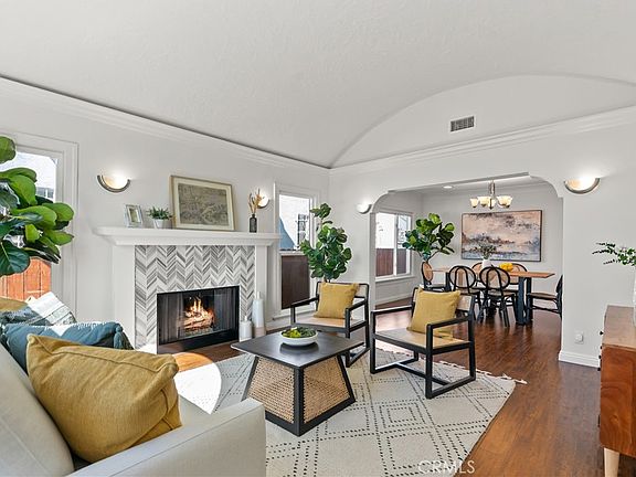 Charm abounds at this upgraded, solar-powered 1920s Spanish gem in the heart of blossoming West Adams! Step up onto the clay tiled porch leading to an adorable arched alderwood front door with vintage styled speakeasy. Inside you'll find an open living room complete with matching picture window, high barrel vaulted ceiling, and warm fireplace. Pass through the period-adorned extra wide portal into a spacious semi-formal dining room and open concept updated kitchen with newer cabinets and countertops, subway tile backsplash, stainless steel appliances, and a bright breakfast nook. Three bedrooms, two updated full bathrooms, and side-by-side laundry alcove round out the interior. Outside is a peaceful, zen-like back patio with fire pit, and a sizable 2-car garage that would also make a great art studio, home gym, rec lounge, or potential ADU conversion. The grounds have been accented with beautiful drought-tolerant greenery visited on occasion by songbirds, hummingbirds, and butterflies. Improvements made since 2018 include central heat and air conditioning, new roof, Nest thermostat and security system, tankless water heater, double pane windows, stone driveway pavers, seismic bolting and bracing, fiber internet, and a *fully paid off* solar power system so the new owner will save BIG on electricity from Day 1. Located near Metro E Line and K Line stations. Also near the new LaCienega/Jefferson Whole Foods Market and West Adams spots Highly Likely, Cento Pasta Bar, Tacqueria Los Anaya, Party Brewery, and more. Timeless appeal, modern convenience, and a central location come together in this delightful home!