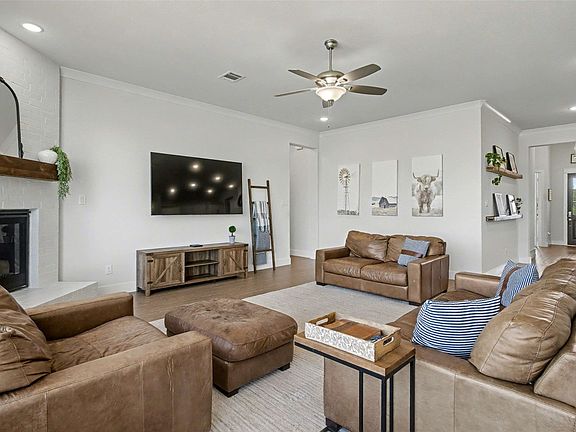 With an impressively low 1.68% tax rate, this stunning 3,038 sq. ft. ranch-style home sits on a fully irrigated 1-acre lot directly across from the community pond. Offering 3 bedrooms, 2.5 baths, a private office, and a dedicated media room, this property blends space, comfort, and modern design.