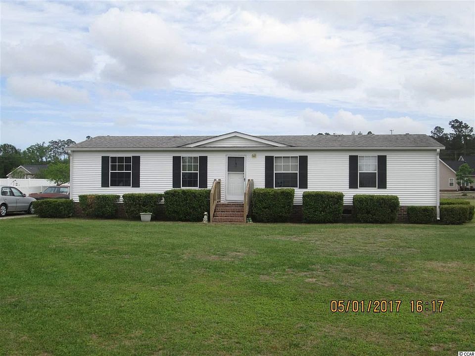 Investors dream! Wonderful double wide on brick foundation in quiet neighborhood with NO HOA fees or restrictions close to Conway. This home is sold AS IS and could be the gem of the neighborhood with new carpet and some TLC. Large backyard with 2 storage sheds, one has electricity, and a play set and trampoline for the kids! Convenient location with country feel but close to town, short drive to the beach, and close to major roads.