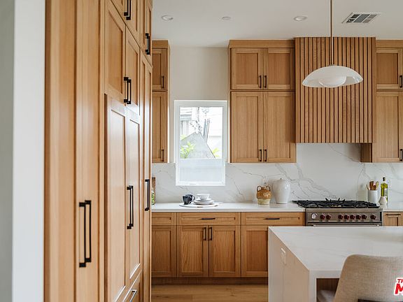 Welcome to this beautifully remodeled modern farmhouse on a palm tree lined street, a true sanctuary in the vibrant and eclectic neighborhood of West Adams. This impressive home has undergone an extensive renovation, featuring nearly all-new construction and modern amenities, making this residence feel like a brand-new home. This home features four bedrooms and four and a half bathrooms, each with an en suite bathroom and custom walk-in closet equipped with shelving and drawers, ensuring ample storage and privacy. As you enter, you're greeted by soaring ceilings and abundant natural light that floods the open layout. To your right, a guest bedroom with a large window, an en suite bathroom, and a walk-in closet offers a welcoming space for visitors. The heart of the home is the expansive common area, featuring an open floor plan that includes a large dining area, a family room with a cozy electric fireplace, and a spacious kitchen. The kitchen is a chef's delight with custom solid white oak cabinets, Quartz countertops, a substantial island, and a vast walk-in pantry, all complemented by new appliances, including a panel-ready refrigerator. Convenience is at the forefront with a nearby powder room serving the common area. Ascend to the second floor where you'll find three massive bedrooms, each boasting its own en suite bathroom and custom walk-in closet. The laundry facilities, thoughtfully placed in the upstairs hall, include new washer/dryer hookups with space above the machines for folding clothes and additional storage. The primary suite is a true retreat, featuring an extensive walk-in closet and a luxurious bathroom with wood-styled tile walls, a freestanding tub, a large shower, oversized skylight and dual vanities. Outside, the expansive backyard is lined with maturing ficus trees for privacy and includes a new built-in BBQ area. The versatile gravel space offers potential for a fire pit, bocce ball court, or a future pool, perfect for outdoor entertainment and relaxation. RTI plans for a pool are included in the sale. The back deck is lined with exterior lights and dusk-to-dawn lights, creating a welcoming ambiance. This home boasts numerous upgrades, including a new roof with insulation, new insulation throughout, a new electrical panel and new electrical wiring throughout, two new HVAC systems, and a new plumbing system including the main line. All new energy-efficient windows and a custom front door enhance the home's modern appeal. Additional features include a tankless water heater, an EV charger (240V) in the garage, built-in Sonos speakers and amplifier, and a comprehensive camera and alarm system with intercom. An automatic sprinkler system in the front and back ensures easy maintenance of the lush landscape. Located just steps from Vineyard Recreation Center, which features a playground and basketball court, and a short walk or drive to local favorites like Highly Likely, Mizlala, Vicky's All Day, Cento, Chulita, Johnny Pastrami, and Whole Foods on Jefferson Blvd, as well as Delicious Pizza, Alta, and more on Adams Blvd. With proximity to Culver City's shops, restaurants, and local parks such as Kenneth Hahn and Baldwin Hills, and close proximity to Metro K Line and Metro E Line stops, making it easy to get to LAX, Santa Monica, and DTLA, this home is ideally situated for enjoying the best of West Adams. Welcome home to a perfect blend of style, convenience, and upscale living in one of Los Angeles' most sought-after neighborhoods, now enhanced with the latest in home technology.