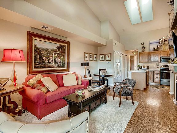 Golfer and bikers paradise. Directly on the golf course with amazing views and just blocks from the Platte River Bike Path. Many improvements to speak of: newer A/C, new hot water heater, all new appliances and washer/dryer, refinished hardwood floors, new carpet, new quartz countertop/sink/faucet in bathroom, new tile floor in bathroom, all upscale custom blinds throughout-over 2k, freshly painted throughout, all new upscale lighting w/chandelier in kitchen, new hardware on doors, updated all outlets and switches with dimmers, new ceiling fan, and new wrought iron security door. This fabulous home has vaulted ceilings, under mounted lights in kitchen, skylights in kitchen and bathroom. Immaculate condition. Peaceful/quiet yet easy access to downtown Denver, to the mountains, and walking distance to Historic Downtown Littleton. Walking distance to restaurants, major grocery store, and bus line/light rail.
