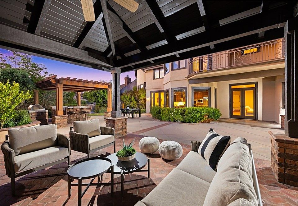 Nestled within the prestigious Hidden Mountain Estates, this exquisitely reimagined 5-bedroom, 2-2-1-bathroom residence marries timeless sophistication with modern luxury, set upon a rare, flat, nearly half-acre lot where an elegant, sweeping driveway wraps gracefully around the home. Privately tucked away with picturesque views, the home is designed for both grand entertaining and everyday living. A welcoming foyer reveals dual staircases and a spacious main-floor office, while the remodeled chef’s kitchen takes center stage with custom cabinetry, a built-in Sub-Zero refrigerator, an expansive island, and a light-filled breakfast nook. The sprawling master retreat is a true sanctuary, complete with a double-sided fireplace, a wet bar, and a serene sitting area. The luxurious spa-inspired bathroom features a Jacuzzi tub, an oversized walk-in shower, and dual granite-topped vanities, along with abundant closet space. Each secondary bedroom offers the convenience of an ensuite bath, including a downstairs guest suite and an upstairs bedroom that connects to a bonus room—ideal as a playroom, study space, or teen hangout. Expansive living and dining areas flow seamlessly through French doors to the professionally landscaped backyard, where a covered fireplace lounge and built-in barbecue set the stage for effortless outdoor gatherings. With space for a future pool and thoughtful updates throughout—including new flooring, carpeting, window treatments, and fresh paint—this light-filled home embodies a perfect blend of style, comfort, and meticulous detail.
