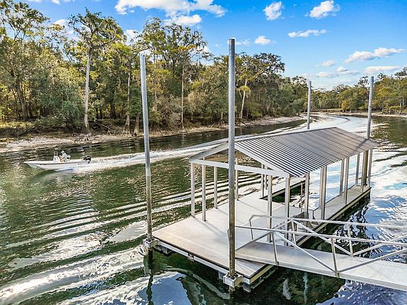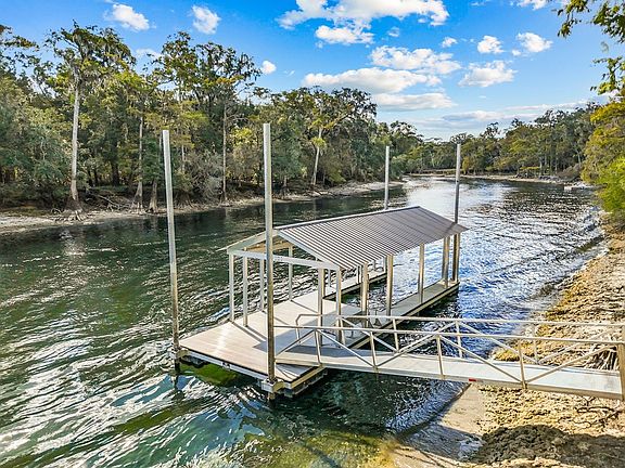Discover your river retreat! Nestled on 1.86 acres with direct 163 feet of frontage on the scenic Santa Fe River, this property comes fully equipped with power, water, and 2024 septic already in place, making it ready for your river adventures, RV, or dream home. A permitted 2022 aluminum floating dock with a 10x20 boat slip, bench, ladder, and solar lighting makes launching, swimming, lounging, or fishing a breeze. Follow the boardwalk with PEX water lines to the dock, where a convenient spigot and hose make cleanup simple and easy. Behind the gated entry, privacy meets functionality with cedar surrounds, a concrete sitting area, and nine water spigots across three irrigation zones. The oversized metal shed with large doors provides plenty of space for storage, river gear, or even a workshop. You'll also find flint rock landscaping, a natural rock seawall, fruit trees, and a beautifully maintained yard. Located in Ichetucknee River Estates, you'll have community access to a private boat ramp just down the road and Leroy Brown Park, directly on the Ichetucknee River, offering another easy launch spot for your river adventures. Bring the boat, the RV, or your dream home plans—this property is made for fun, relaxation, and outdoor enjoyment. A must-see!