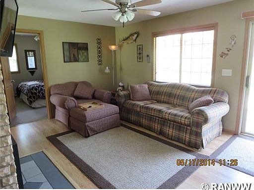 Beautiful yard with sprinkler systm. Year round home or cabin on a quiet bay with a boathouse. This is just as cute as can be and ready to move in. Has a 16x32 concrete patio and for winter a fireplace. Age of house is estimate.