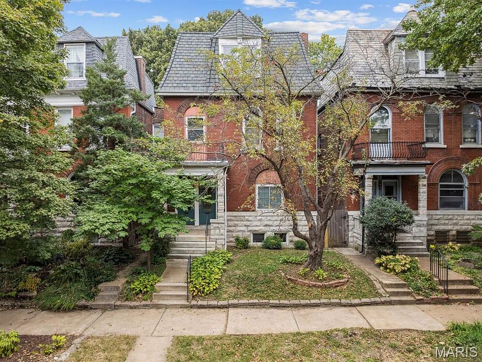Tucked away on a peaceful no-through street in historic Fox Park, this two-family offers flexibility for investors or for those who want to live in one unit while renting the other. Main Level (Leased through December): A welcoming 2-bedroom apartment featuring an eat-in kitchen, in-unit laundry, and a deck. Upper Unit (Vacant): Spanning two floors, this spacious unit has a spacious open-concept living and dining area. The kitchen features stainless appliances, a pantry, and access to a balcony. Primary bedroom and full bath are on the upper units main living level (2nd fl). The third floor has two additional bedrooms, including one with a walk-in closet—perfect for a guest room, office, or creative space. New 2nd/3rd floor HVAC installed in 2022. New TPO roof installed spring 2021. New covered gutters (2022). Basement tuckpointed 2019. Appliances stay with both units. Additional Features: Fenced yard for outdoor enjoyment and a garage-port for off-street parking. All in the Fox Park neighborhood, near Tower Grove Park, Lafayette Square Park, and the dining, shops, and nightlife of South Grand and The Grove.