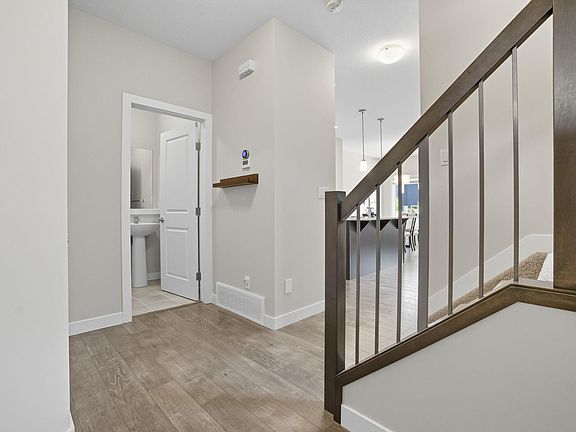 Welcome to this impeccably maintained 2-storey home in vibrant Keswick, offering 3 spacious bedrooms, 2.5 baths, and numerous upgrades. The open-concept main floor features central air AC, 9' ceilings, enginerred hardwood flooring, and a stylish kitchen with quartz counters, island, pantry, and premium Samsung/LG stainless steel appliances. Natural light fills the living/dining area through large windows and patio doors leading to a deck and fully fenced, landscaped yard. A 2-piece bath and direct access to the single garage complete the main level. Upstairs you'll find a roomy primary suite with 3-pc ensuite and walk-in closet, two additional bedrooms, a 4-pc bath, and a convenient laundry room with upgraded washer/dryer—including a mini washer for small loads. Close to schools, shopping, and amenities with quick access to Henday. Ideal for young families—this home shows like new and is truly a winner!