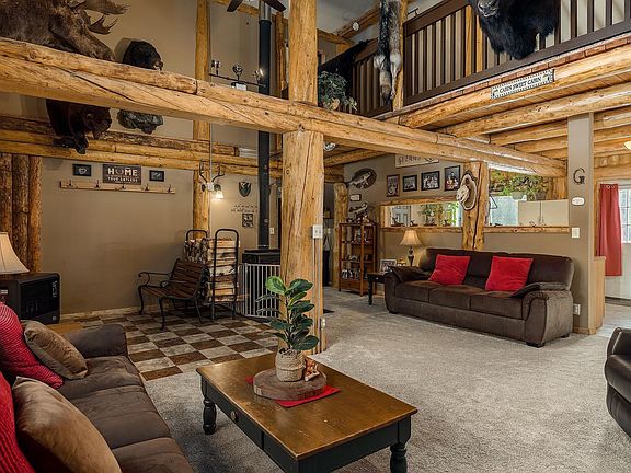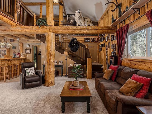 Looking for privacy, space, and that true Alaskan log home dream? You have to see this one. Located at 2849 Repp Rd in North Pole, this custom 5-bedroom, 2-bath log home sits on just over 9 acres and offers a two-car garage, hand-scribed log construction, and soaring lodge-style ceilings. The moment you walk in, the wow factor is unreal — this isn’t just a house, it’s an experience. From the vaulted ceilings to the detailed craftsmanship, it’s everything you’d expect from a high-end Alaskan lodge. The main level features a wide-open living area with a kitchen, dining space, bar, cozy wood stove, laundry room, full bathroom, and four spacious guest bedrooms. Upstairs is where the magic continues with the private primary suite, a library, office, home gym, TV area, and a game space complete with a pool table that conveys with the sale. Conveniently located just 25 minutes from downtown Fairbanks and nestled between both Eielson and Fort Wainwright, this property is an ideal fit for anyone seeking a private, character-filled home near town and military bases. If acreage, no neighbors, and that wow-factor log home vibe are on your wish list, this one is a must-see. Offered at $549,900
