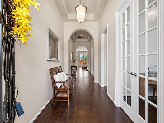 Stunning 1 story Highland beauty nestled in the 24 hour manned gated community of Harmony Creek. The owners have tons of custom upgrades in this home that must be seen in person. Back yard oasis, large covered patio, outdoor kitchen/fireplace & amazing pool/spa. Hardwoods in entry, study, game room, dining room, family room & kitchen, plantation shutters throughout, study w/French doors & wall of custom built ins, family room features a stone fireplace with cedar mantle. A 2nd set of French doors lead into the game room (would make the perfect 2nd office if needed). The island kitchen is straight out of a magazine with level 6 granite, bar seating + breakfast area with custom built ins & wine fridge. Primary bedroom was extended to create a sitting area. Huge primary closet. Laundry room with a sink & tons of storage. Amenities: 2 pools, basketball/tennis courts, splash pads, walking trails, gym, community center + parks! Please see list of extensive upgrades & floor plan attached.