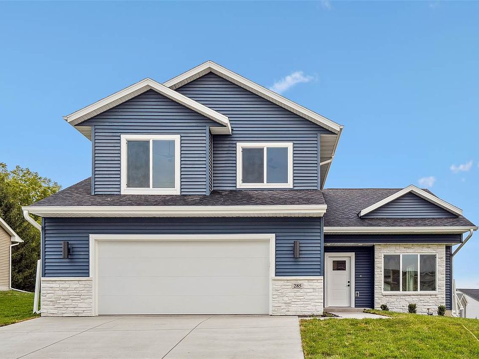 Welcome to 285 Ashford Place — a stunning new-construction home offering 2,113 sq ft of beautifully designed living space. Thoughtfully built with modern finishes and an open layout, this home delivers comfort, functionality, and style in every detail. The main level features a spacious living room with vaulted ceilings, recessed lighting, and a striking floor-to-ceiling tile fireplace. An open-concept kitchen and dining area flow seamlessly together, with stainless-steel appliances, custom cabinetry, and a center island ideal for entertaining. Sliding glass doors open to a large patio, perfect for relaxing or hosting guests. Upstairs, the primary suite offers a private retreat with a walk-in closet and a beautifully tiled double-vanity bath. Two additional bedrooms and a full bath complete the upper level. The finished walk-out lower level adds exceptional versatility with a large recreation room, a fourth bedroom, and a full bath—ideal for guests, a home office, or a fitness area. Nestled in a quiet neighborhood near local parks, schools, and shopping, this home combines modern design with the charm of small-town Iowa living.