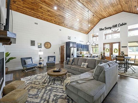 This thoughtfully designed cabin, "Blue Beary Hill" features an open concept living room, floor to ceiling gas fireplace, quality furnishings, roomy dining area, and kitchen styled with tasteful decor that reflects the natural beauty of the surrounding forest. The fully stocked kitchen includes a large island seats 5 guests, has white quartz countertops, and stainless-steel appliances, offering ample space for meal prep, casual dining, and gathering with friends and family. The dining area table seats 6 people. Both king bedrooms offer comfort and privacy with great views of the outdoors from the bedrooms windows, each bedroom has their own ensuite bathroom complete with a stand up shower and double vanities making this cabin ideal for guests seeking a relaxing retreat. Outside, enjoy an impressive 850 sq. ft. covered patio outfitted with floor to ceiling fireplace and a gas grill, hot tub, and generous seating and dining areas, perfect for unwinding after a day of exploring everything Hochatown has to offer. Whether your plans include hiking, fishing in Beaver Bend State Park or boating on Broken Bow Lake, or simply relaxing, this cabin provides the perfect base for your next adventure. This property is outside of the designated city limits and saves on extra lodging taxes. The lots is heavily treed with pines and hardwoods, has great access and large driveway for boat and ATV parking. Cabin is being sold fully furnished.