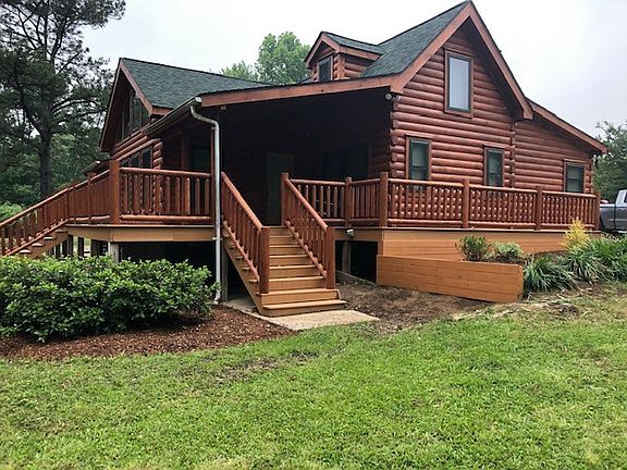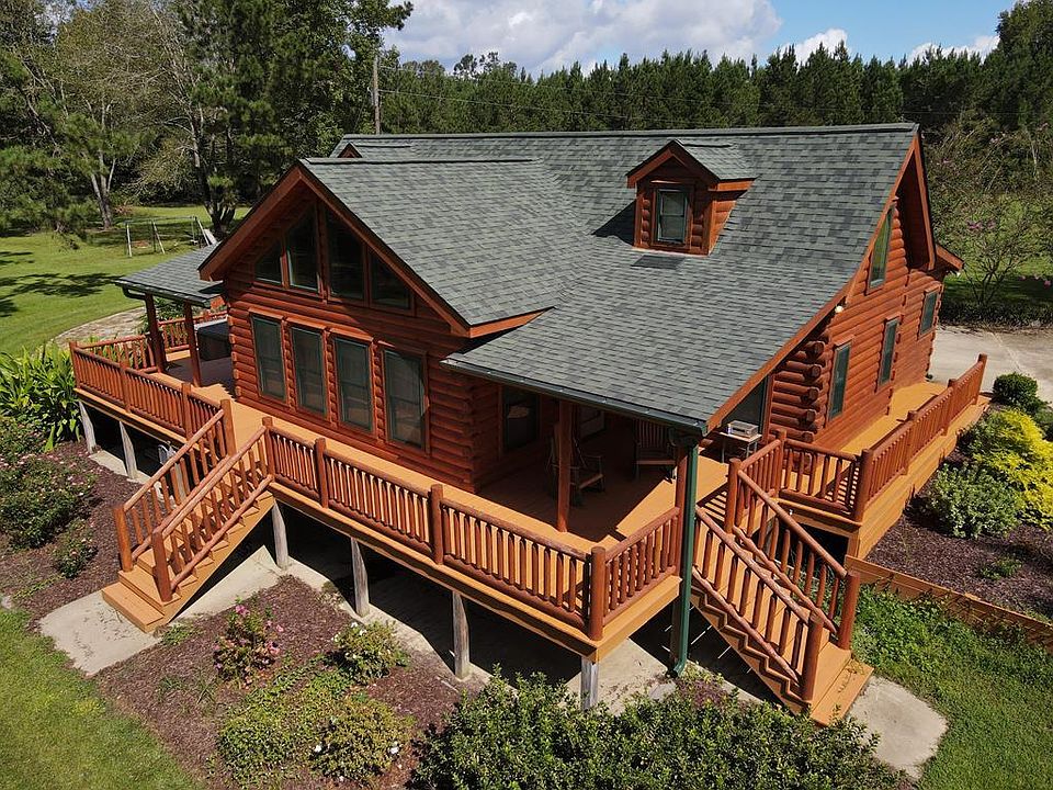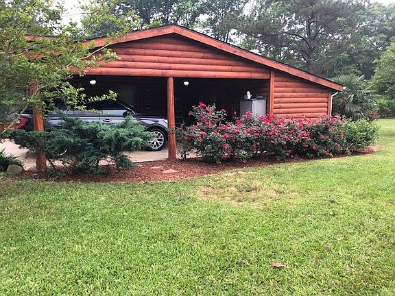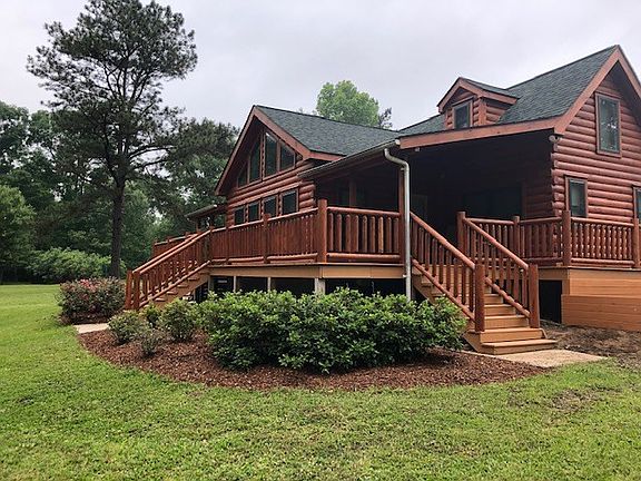 MUST SEE!! This beautiful log cabin sits on 130+-acres of mature hardwood/pine timber! The cabin, built in 2012, is 3br 4 ba and has to be seen to truly appreciate the quality and workmanship. It's 1770 sq ft with 2 levels and anew A/C and duct work. The upstairs is a loft bedroom with full bath. There is a wrap around porch ,hot tub, and a separate kitchen for outdoor use. The appliances are stainless steel, hardwood and tile floors, and granite countertops. The outdoor views are amazing with blueberry bushed and fruit trees. The 130+- acres has frontage on Bear Skull Creek and is loaded with timber, deer, and turkeys. The interior roads, food plots, shooting houses and feeders make this a truly turnkey property. There is also an RV covered shed with 30 and 50 amp hook ups. There is a storage room in the RV shed and a covered porch area. This cabin and acreage is a MUST SEE!