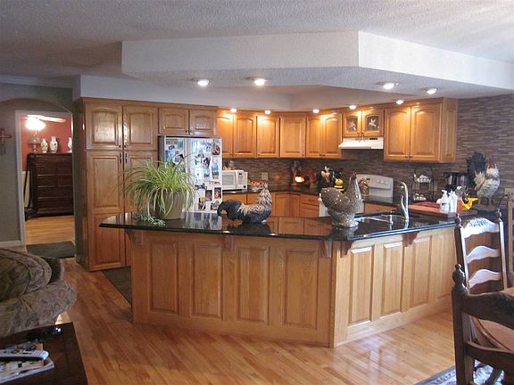 Mint condition and fully modernized home. Beautiful hardwood floors and ceramic tile throughout. Located in the country with only 2 taxes is this 2,600 square foot home with an attached 2 car heated garage and a separate 3 car garage and a 4 wheeler separate garage. This home offers a custom oak kitchen with all appliances and granite countertop with ceramic backsplash. Open floor plan is very comfortable with propane free standing fireplace that is vent free and a large sunroom off the living/area. This home features brand new metal roof on house and all garages. There is a full basement finished with hardwood and ceramic and the home offers 3 bedrooms. Call to be the first to see this home located in Massena Electric!