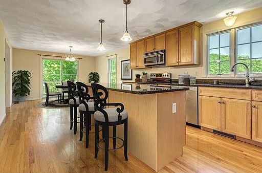 - Kit Dscrp: Main Level, Dining Area, Flooring - Hardwood, Countertops - Stone/Granite/Solid, Breakfast Bar / Nook, Open Floor Plan, Balcony / Deck