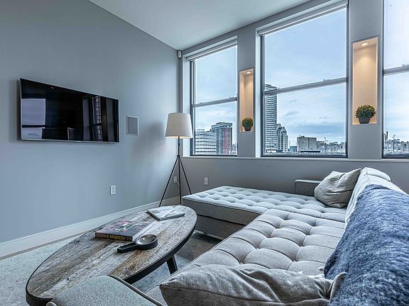 The master suite presents a tranquil escape with its spacious layout, luxurious walk-in closet, and a selection of premium furnishings, while the versatile second bedroom/den offers space for guests or a private workspace, fully equipped and ready for use. Bask in the breathtaking cityscape views of the South End from the rooftop deck, and take advantage of the convenience of rental parking and close proximity to Back Bay Station.