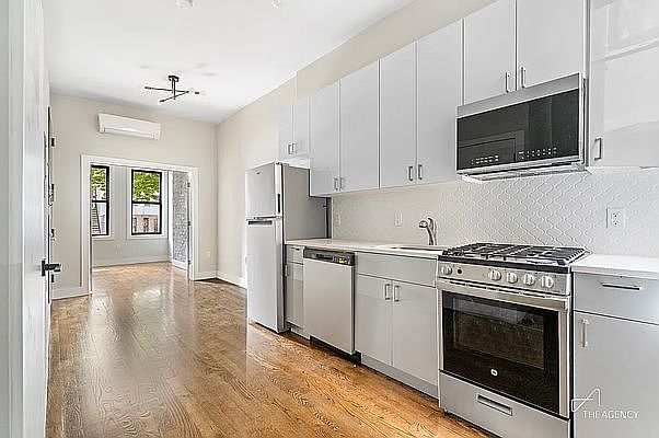 Prime Bushwick- Beautiful and tranquil shared outdoor space and rooftop! Start your morning with a cup of coffee outside or sunbathe this Summer on the rooftop! This recently renovated 3 Bed/1 Bath with washer/dryer in unit, has hardwood floors and high ceilings, letting in natural light throughout. The apartment boasts an open living room and modern kitchen with stainless steel appliances. The spacious bedrooms have ample closet space plus space for a queen-sized bed and a WFH set up. There is also a shared common outdoor space and rooftop. The apartment is situated walking distance to Myrtle Wyckoff Avs (L) and Myrtle Wyckoff Avs (M) stations and close to Irving Square Park, Food Bazaar, Luv Story, and tons of other local gems in historic Bushwick!