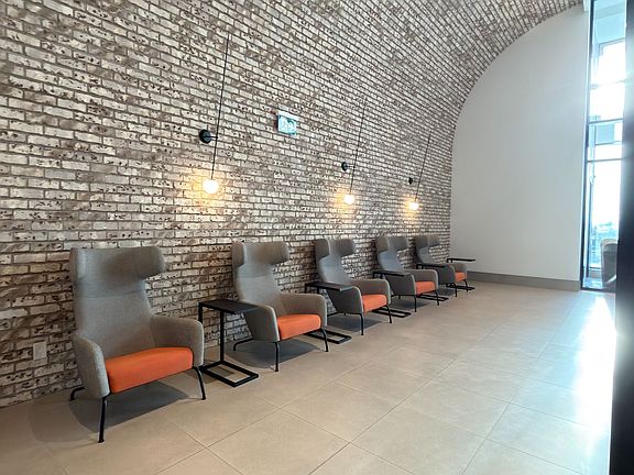 Abundant natural lightLarge balconyFloor-to-ceiling windowsOpen-concept layoutBright modern finishesCustom showerOversized den