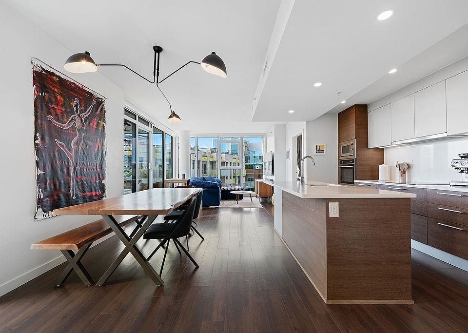 First time on the market, this SW corner 2-bed + den, 2-bath home at The Independent Offering floor-to-ceiling windows for a bright, open-concept layout with generous living, dining, and gourmet kitchen with double side by side fridges. The versatile den/flex room features sliding doors for added privacy, while the expansive 166 sq ft covered deck extends your living space year-round.Thoughtful touches include in-suite storage, 1 parking stall, and full air conditioning for year-round comfort. Situated in one of Mount Pleasant's most sought-after buildings, you're just steps from vibrant Main Street, transit, and the future Broadway & Main SkyTrain station. Amenities include a fitness room, garden, guest suite, bike storage, BBQ and dog wash areas, and a residents' lounge. Shows like new!