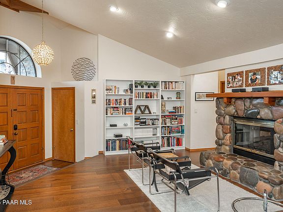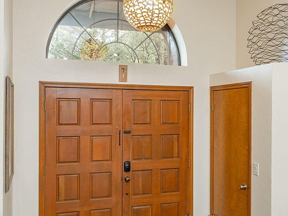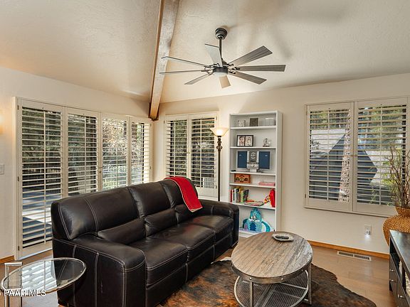 Fantastic Single Story home with great location, situated serenely amongst the pines. Extensively renovated, you will love the approach to this unique and inviting home that oozes character. Light and bright with skylights, and an open and very efficient split floorplan (excellent for privacy with guests), views out every window and room. Enjoy the 2 sided fireplace from the living room or dining room! The outside patio and garden area (dog run?) are very good sizes and have easy access off of both the kitchen and living room. You will enjoy the surrounding trees, and the forest sounds. Wood flooring (Oak, wirebrushed water proof engineered hardwood floor), high ceilings, good closet space, recessed lighting. Primary bedroom bath with jacuzzi spa tub, dual sink, separate shower, walk in closets and private patio. Lots of cabinets in laundry room and garage. Close to the city's historic downtown, renowned for its charming shops and historic architecture. Nearby parks and outdoor activities are readily accessible, making it a perfect home for those who appreciate the great outdoors & there is access to RV storage that is available upon request.