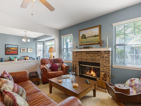 Rarely available, is this fabulous 1556 Sq. Ft. Scottsdale ranch model townhome in the sought after 55+ community of Carillon North. It is a coveted end unit, featuring 2 bedrooms, 2 baths and a office/3rd bedroom as well. This superb open floor plan is a special feature, opening to a beautiful living room/family room with a charming brick fireplace with gas logs to enjoy the warmth on those winter evenings. The dining area can be versatile off the family room or the kitchen. The spacious kitchen with it's white 42" cabinetry is a highlight as well as the newer appliances. The lovely master suite is a true retreat, with it's large walk in closet and master bath with dual vanity, shower and soaker tub. The bright 2nd bedroom is conveniently located cross from the 2nd bath. The 2 car garage opens to the laundry room area with a utility room connected to it with room for outerwear cubbies. There is also a large crawl space that can be used for extra storage. Another outstanding feature is the patio surrounded by lush greenery. The furnace, AC and roof were all installed in 2021 and the newer wide planked flooring and neutral carpet is located throughout the home. A real drawing card to this community is their outstanding clubhouse with all the amenities and activities including a huge heated indoor pool, exercise room & gracious entertaining areas with an extraordinary garden & pond to enjoy as well. There is outdoor tennis, pickleball and golf at your disposal as well as miles of walking trails in the protected Rollins Savanna. This is truly a special place to call home.