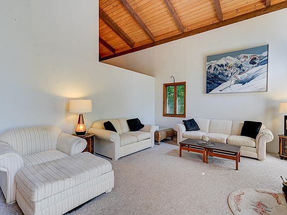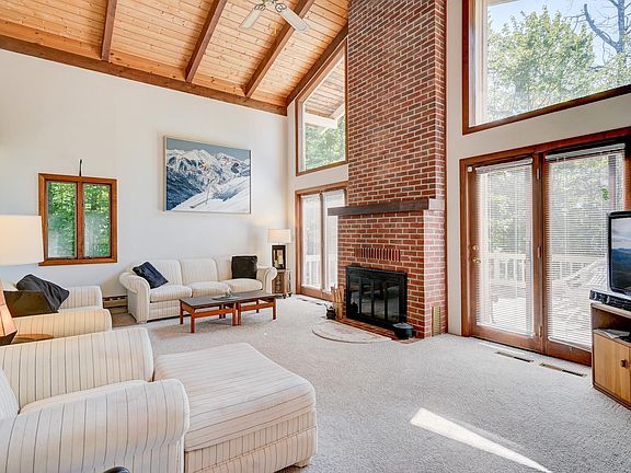Classic mountain home in Bartlett’s desirable Glen Ledge neighborhood! This oversized chalet with attached garage is privately tucked up on a knoll on over an acre. The main level is open and airy, with cathedral ceilings and exposed beams, a wall of windows in the living area letting in tons of natural light, and a cozy wood fireplace on a floor to ceiling brick hearth. Sliding doors from the living room lead out to a huge deck with hillside views - the perfect spot to kick back and relax at the end of the day or sip your morning cup of coffee. The kitchen and dining area has plenty of cabinets and space to cook up and serve your favorite home cooked meals. The hallway off the kitchen leads to the primary bedroom and shared full bath. Downstairs, you’ll find a second living room with a wood burning stove, two additional bedrooms with great closet space, another full bath, and the laundry and utility room. Here you’re at the fingertips of all Mount Washington Valley has to offer. Attitash, Wildcat and Cranmore all within a 20 minutes drive, Storyland just 5 minutes, and many great dining options.