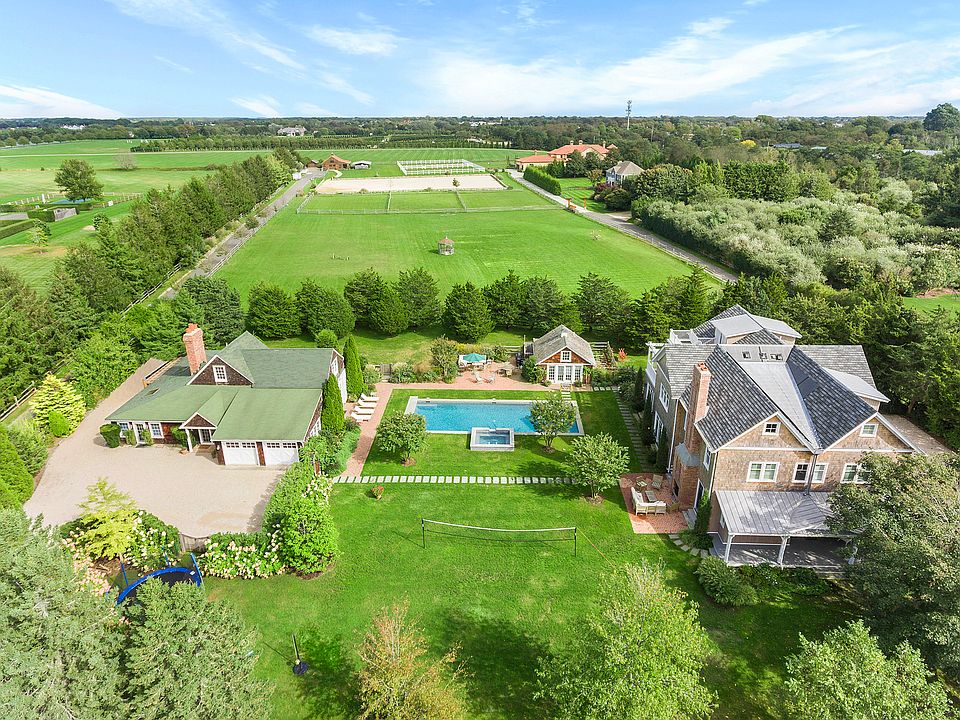 Spectacular compound set amidst the tranquil fields of Water Mill. This property has a multitude of amenities to entertain all ages and interests. The 9,000 square foot main house is built on four floors and includes at least six entertaining areas, seven bedrooms, and nine bathrooms. There is an elevator in the entrance hall and the lower level features a screening room and a large game room. The main house has been recently finished to a high level of luxury and comfort. There are multiple outdoor entertaining and dining areas overlooking the beautiful grounds, pool and Jacuzzi. In addition to the 9,000 square foot main house, there is a 4,000 square foot converted period barn with a huge dining hall for large-scale entertaining, two extra bedrooms, two bathrooms, a kitchenette, and central air. This makes it a wonderful space for overflow guests. A very special and unique property just a few miles from both Southampton and Bridgehampton and world-class ocean beaches.