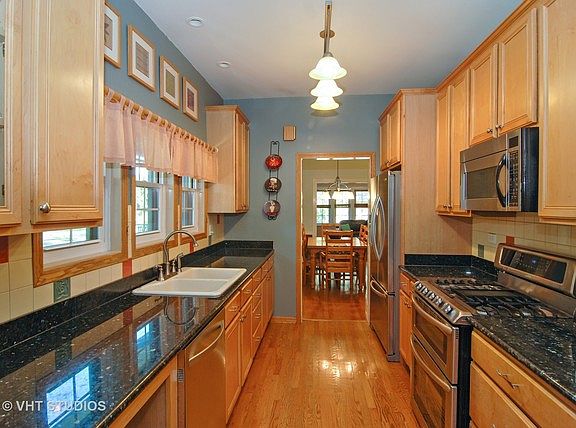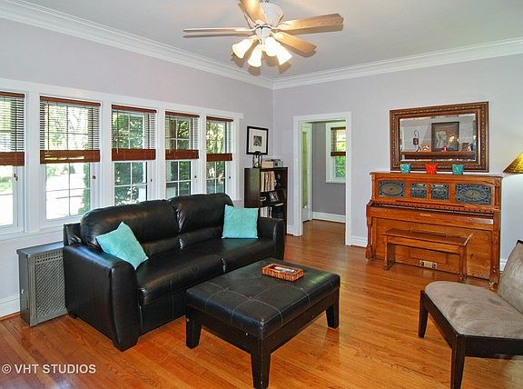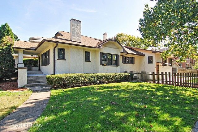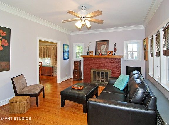 Charming Ranch Bungalow in the historic Riverside gaslight community. Cozy up to the brick fireplace in the large living room with high ceilings, crown molding, hardwood floors and lots of windows. Entertain in the separate dining room or the newer kitchen with loads of cabinets, granite counters & table, pantry & stainless steel appliances. Updated full bath & 3 good sized bedrooms with walk-in closets on main floor. Gather in the family room or move outdoors to the deck or patio for alfresco entertaining. Finished basement has recreation room with optional 2nd kitchen area, full bathroom with shower, salon or office/craft/work room and laundry area. Also, two additional storage areas. Large fenced corner lot with extra patio space for large outdoor gatherings and 2 car garage. Quiet location yet close to expressways & shopping. BETTER HURRY, THE GOOD ONES GO FAST!