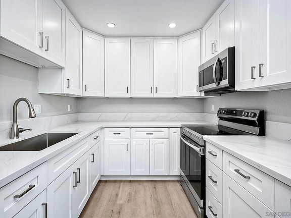 Beautiful remodeled one story condo with NO Mello Roos and Low HOA dues!!! Extensively upgraded with new cabinets, appliances, quartz countertops, flooring, upgraded bathrooms, new paint, lighting fixtures and much more!!! Located on the second floor with no neighbors above!!! Property is close to San Diego Country Club and Third Avenue!!! Must See!!!